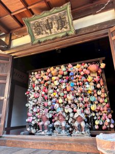 八坂庚申堂といえば、三猿さんの存在よりも、手づくりのカラフルな「くくり猿」が有名かもしれません。京都に詳しくない方でも、一度は写真などで目にしたことがあるのではないでしょうか?