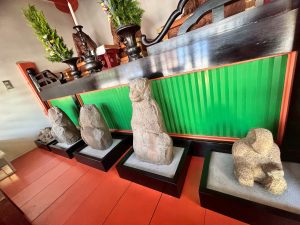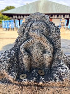 この並びの違いは、庚申堂ならでは特徴かもしれません。三猿と言えば「見ざる、聞かざる、言わざる」というフレーズが一般的なようですが、京都の八坂庚申堂で見られる三猿さん達も、その並びはバラバラでした。日光東照宮の三猿さんも、「見ざる、聞かざる、言わざる」というフレーズとは違い、左から「聞かざる、言わざる、見ざる」でした。それぞれの土地の風土や時代に影響を受けているのかもしれませんね。