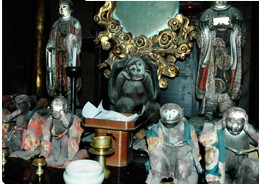 人は、いろんなことを見聞きし、言葉にしてしまいます。そこに対して、心を乱さないようにとの教えの「見ざる、聞かざる、言わざる」の三猿の存在でしたが、こちらの4匹目のおサルさんは、「あれこれ思わない」、つまり心を静め、無心に生きることの大切さを説いているのです。